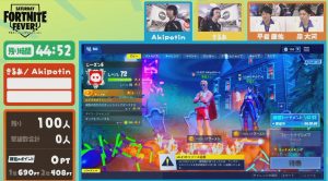 11月10日22時より放送されたSATURDAY FORTNITE FEVER #5 にFortnite部門のきるあ、akipotin、Fisker、MeRcYyyの4人が出演しました