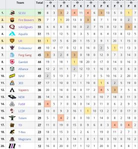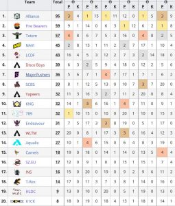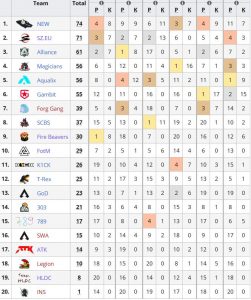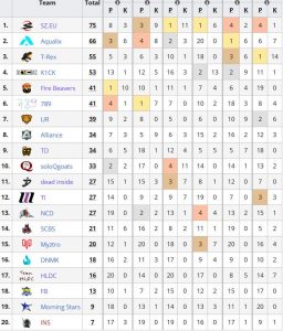 最初にスコア50に到達したのはFire Beaversが2ラウンド目において1位キルポイントは20という驚異的なスコアを重ねてその後のラウンドで優勝に大手を掛けます。