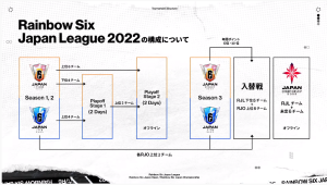 『Rainbow Six Japan League 2022 』は10チームからなる約半年間をかけた3シーズン制の公式リーグ大会で、年間ポイント制による年間順位が決まります。