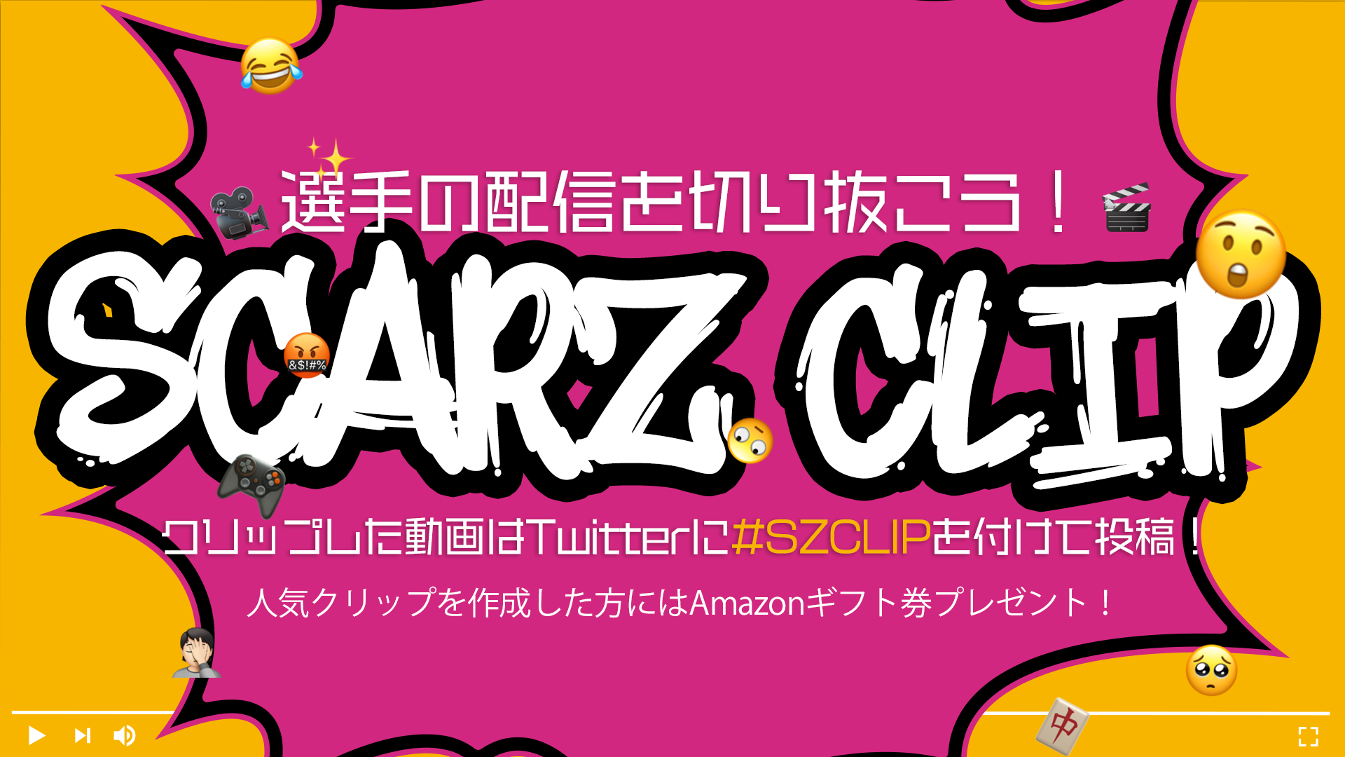 応募方法はかんたん!SCARZ選手の配信から1分以内の動画を切り取って、Twitterのハッシュタグ「#SZCLIP」をつけて投稿するだけ!