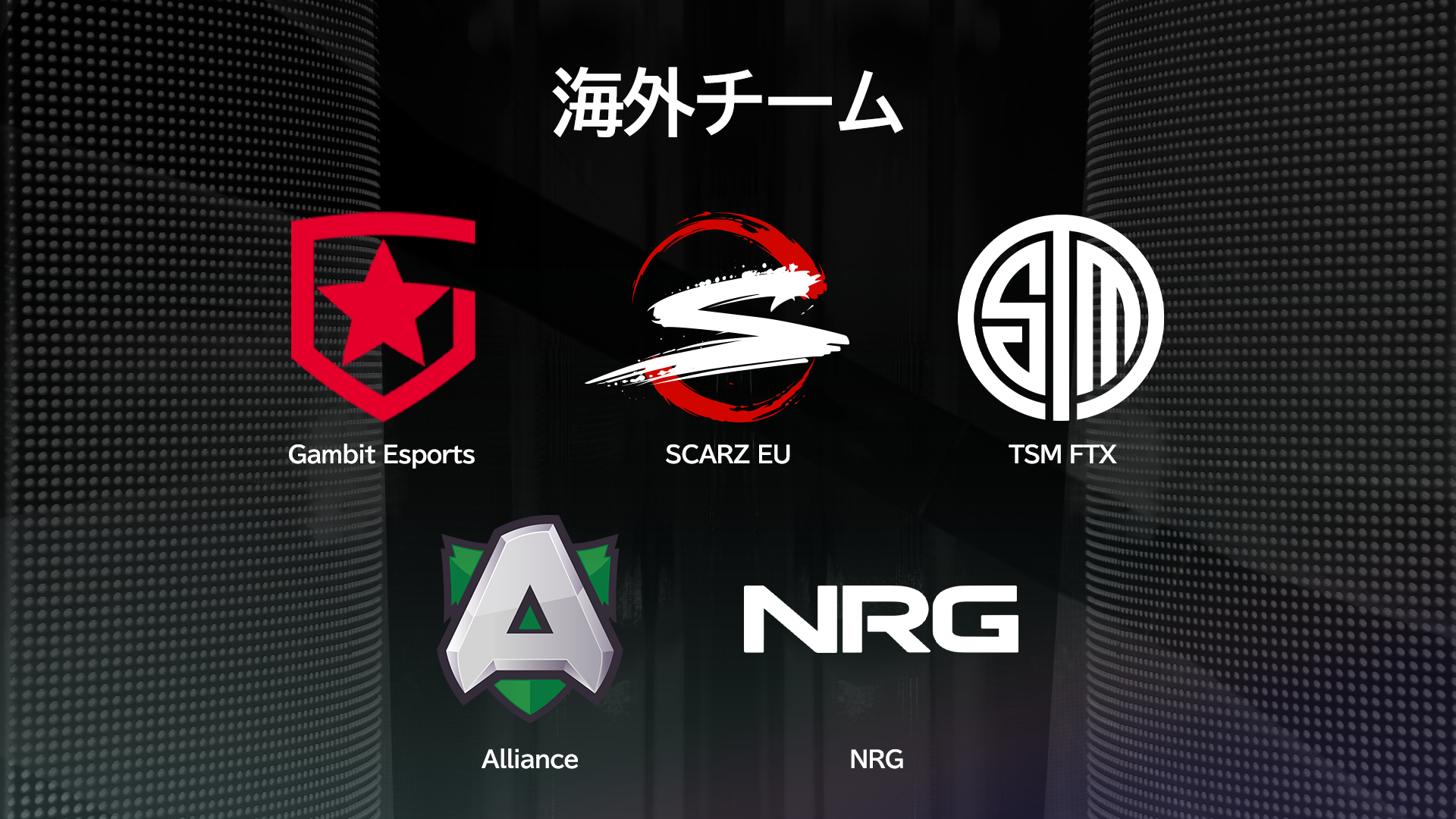 SCARZ EU /TSM FTX /Gambit Esports /Alliance /NRG /JUPITER VEGA /Team Northeption /UNITE /FENNEL /SunSister GOD /RIG North /USG IXiA/ORTHROS FANG /GTS Art /Team Crylix /Team BobSappAim /Team Alpha Azur /Team あさぱん /Team NIRU /Team 蛇足 |